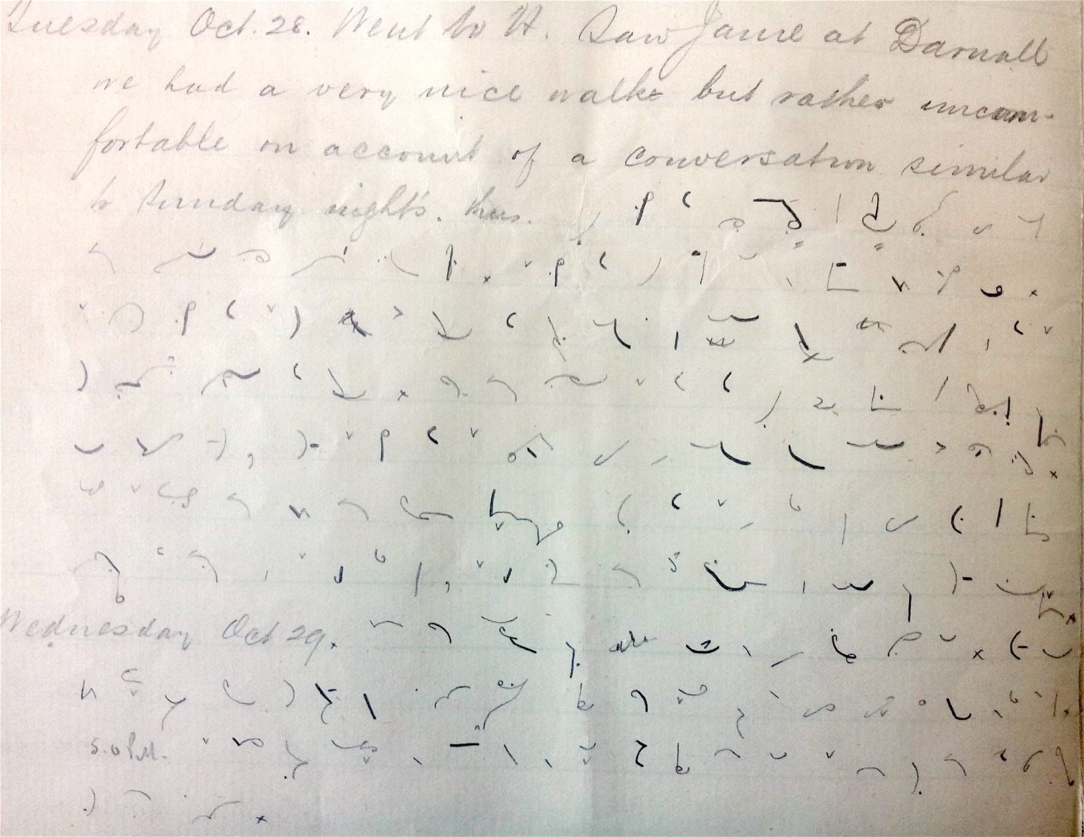“Tuesday Oct 28. Went to H (Handsworth). Saw Janie at Darnall we had a very nice walk but rather uncomfortable on account of a conversation similar to Sunday night’s thus…”shorthand-28101879shorthand-30101879shorthand-03111879